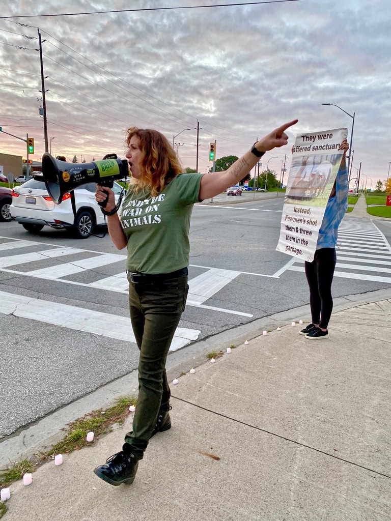 Having moved to Burlington, she became aware of Fearmans’s slaughterhouse while driving her son to a tutor. “I would see the trucks and turn away in tears. My son was young at the time, and he asked me why I was crying.”
