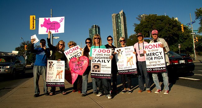 After some research, I discovered that PETA (People for the Ethical Treatment of Animals) was holding a protest at a large Toronto pig slaughterhouse. Both Cameron and I attended the protest, where we connected with other animal activists—some of whom I still work with today.