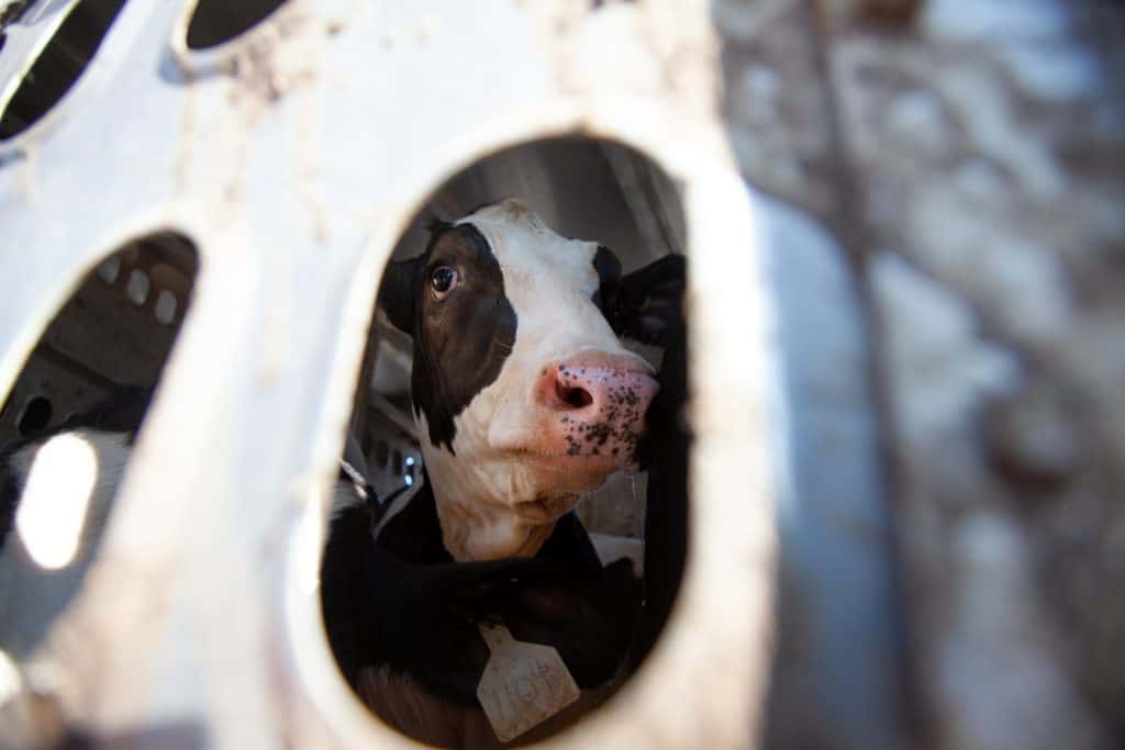 I tried not to show my emotions, but I couldn’t contain myself. I started to cry. The worker laughed as he prodded the cow back into the box and shot him with a bolt gun, the piercing sound ricocheting off the cold, concrete, blood-stained factory walls. I remember the side of the box lifting, and the stunned cow sliding down a concrete slope toward another worker waiting at the bottom. The worker looped a chain around the cow’s back leg, and he was lifted, still kicking, two stories high on a conveyor that took him around a corner to be cut into pieces. My heart was pounding. I couldn’t believe what I had just witnessed.